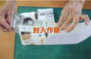 プラスチック商品や書類等の封入、定期的なDM の発送、スポット的に発生した封入等の作業を行います。